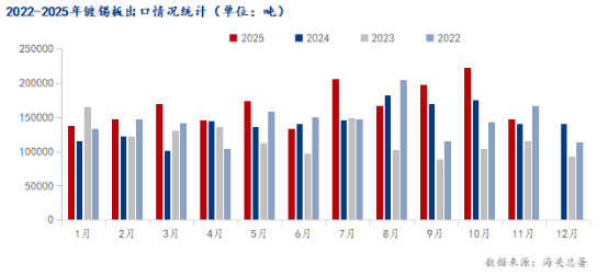 Overall, tinplate exports maintained growth in November. According to the joint Announcement No. 79 by the Ministry of Commerce and the General Administration of Customs, an export license management system will be implemented for certain steel products starting January 1, 2026. It is expected that December’s foreign trade data will show strong performance.