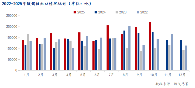 Overall, new international geopolitical frictions in October exceeded expectations, yet tinplate exports continued their growth trend. It is anticipated that foreign trade data will perform well in the fourth quarter.